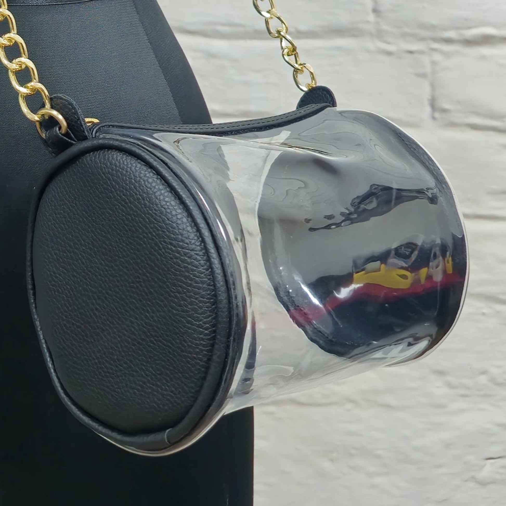 Gear up for game day with the Georgia Klear Bag! Made of vegan leather, this klear bag features colors in black and red with our traditional styles in circle, cylinder, and rectangle. Stay stylish and compliant with this must-have for gameday. Go Dawgs!